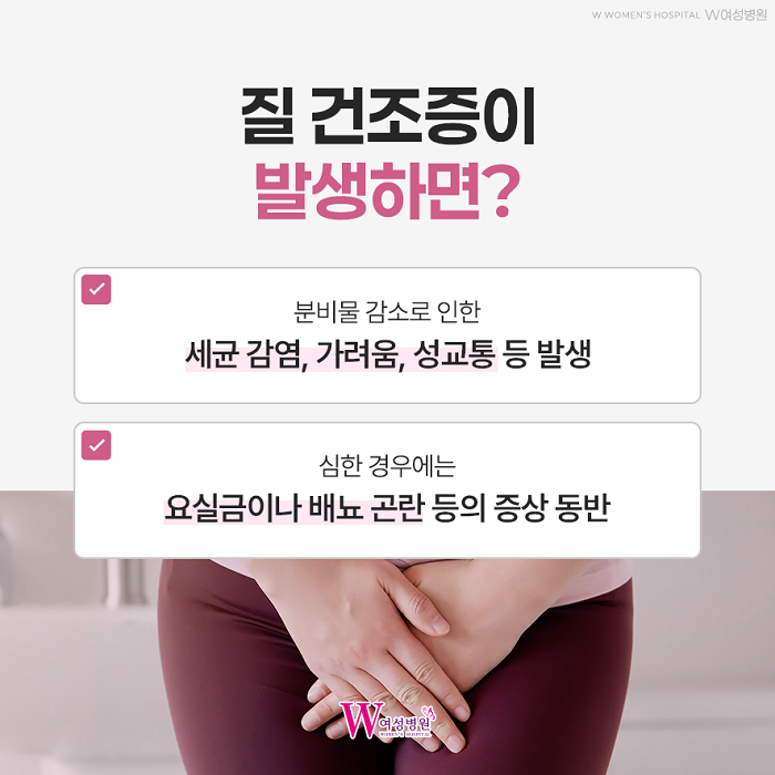 질액 분비량이 줄고 질 안쪽의 촉촉한 점막이 약해지면 감염성 질환(질염 등)이 발생됩니다.