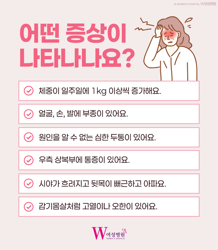 제공자 산부인과전문의 이준희 원장 ![]() 임산부가 주의해야 할 '임신중독증' 안녕하세요. 인천산부인과 인천W여성병원 입니다. 오늘 이야기할 '임신중독증'은 산모와 태아를 위협하기 때문에 각별한 주의와 관리가 필요합니다. 간혹, 방송을 통해서 임신중독증을 겪은 연예인들의 이야기가 소개되면서 궁금증이 높아지고 있는데요~ 오늘, 산부인과 전문의를 통해 '임신중독증'에 대한 궁금증을 풀어보는 시간을 갖도록 하겠습니다. ![]() 최근, 35세 이상의 임신중독증 환자 급증 임신중독증은, 임산부 사망의 원인 중 하나로 전체 임산부의 약 4~5%에서 발생됩니다. 늦은 결혼 추세로 인해 고령 산모가 증가하면서 매년, 임신중독증 발생률이 높아지고 있습니다. 특히, 고령 임신은 임신중독증, 조산, 기형아 출산 등의 위험이 높아지기 때문에 각별한 주의가 필요하다고 이야기드릴 수 있습니다. ![]() ▲ 산부인과 전문의 이준희 원장 1. 임신중독증이란? 진료과 : 산부인과 간단히, 임신중독증은 임신성 고혈압을 이야기합니다. 임신 기간 중 정기검진 과정에서 산모에게 고혈압이 나타나거나 소변에 단백질이 섞여 나오는 '단백뇨' 등이 발생될 경우, 종합적으로 판단하여 임신중독증 진단을 내리게 됩니다. *보통, 많은 임산부들이 임신중독증이라는 말을 많이 사용하는데 ▲ 고혈압이 발생되면 '임신성 고혈압' ▲ 소변에 단백뇨가 검출되면 '전자간증' 이라고 이야기합니다. ![]() 2. 임신중독증 증상은? 진료과 : 산부인과 가장 대표적인 임신중독증 증상은 ▲ 고혈압 ▲ 단백뇨 ▲ 부종 ▲ 두통 ▲ 시력장애 ▲ 상복부 통증 ▲ 급격한 체중 증가 등이 있습니다. "임신을 하게 되면 평소보다 혈압이 높아질 수 있습니다." 일반적으로, 임신을 하게 되면 임신 전과 비교 시, 혈압이 높아지게 됩니다. 하지만, 최대혈압이 130을 넘게 되면 주의해야 하고 만약, 140을 넘어가게 된다면 임신중독증을 비롯하여 다른 질환 발생 위험성도 높아지기 때문에 검사를 통해, 진단에 따른 적극적 치료와 관리를 해야 합니다. ![]() 3. 임신중독증 검사 방법은? 진료과 : 산부인과 임신을 하게 되면 산전 검사를 위해 정기적으로 산부인과를 방문하게 됩니다. 이때, ▲ 소변검사 ▲ 혈압 측정 을 시행하게 되는데 이는, 증상이 없더라도 조기에 '임신중독증'을 포함 다른 질환을 조기에 발견하기 위한 목적을 갖고 있습니다. 위 검사 결과, 임신성 고혈압, 전자간증 등이 의심된다면 정확한 진단을 위해 추가적인 검사를 진행하게 됩니다. *해당 검사는 산모와 태아를 구분해 진행됩니다. ![]() Q. 이준희 원장님.. 임신중독증 예방 방법이 있나요? A : 임신중독증을 예방하기 위해서는 무엇보다 임신 전 건강한 몸 상태를 유지해야 합니다. ▲ 엽산 복용 ▲ 체중 조절 *임신 전 비만과 고혈압, 당뇨가 있는 산모의 경우 임신중독증 발생 위험이 높기 때문입니다. 임신중독증 고위험군은? □ 첫 임신인 경우 □ 35세 이상의 임산부 □ 쌍둥이 이상, 다태 임신인 경우 □ 비만인 경우 □ 가족력이 있는 경우 □ 임신 전, 당뇨 / 고혈압이 있는 경우 ![]() |