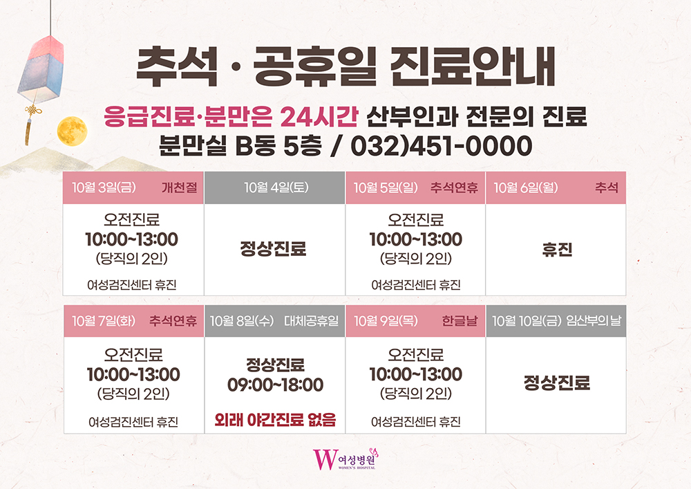 분만실 B동 5층 032-451-0000(ARS 3번)